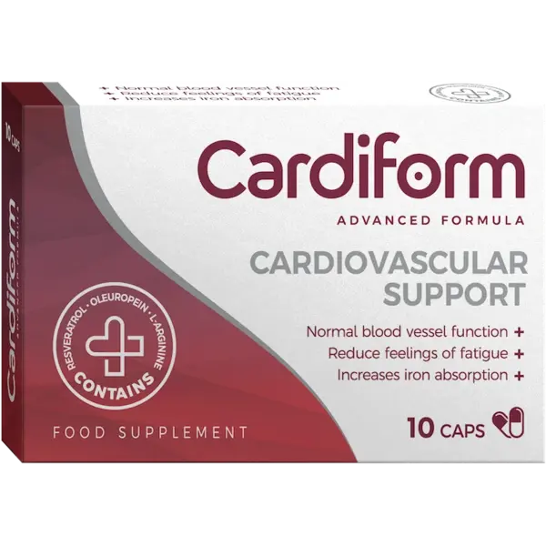 Las cápsulas contra la hipertensión Cardiform son un suplemento diseñado para ayudar a mantener niveles saludables de presión arterial. Están formuladas con ingredientes naturales que contribuyen a mejorar la circulación sanguínea y a fortalecer el sistema inmunológico, promoviendo así una mejor salud cardiovascular.