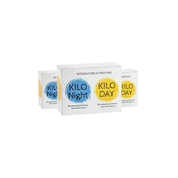 La dosis recomendada para adultos es de una tableta de Kilo Day por la mañana y una tableta de Kilo Night antes de acostarse, preferiblemente con un vaso de agua. Es importante seguir la pauta establecida y no exceder la cantidad indicada. La duración del tratamiento debe determinarse en función de los objetivos de pérdida de peso y bajo supervisión médica o farmacéutica. No se recomienda modificar la posología sin asesoramiento profesional.
